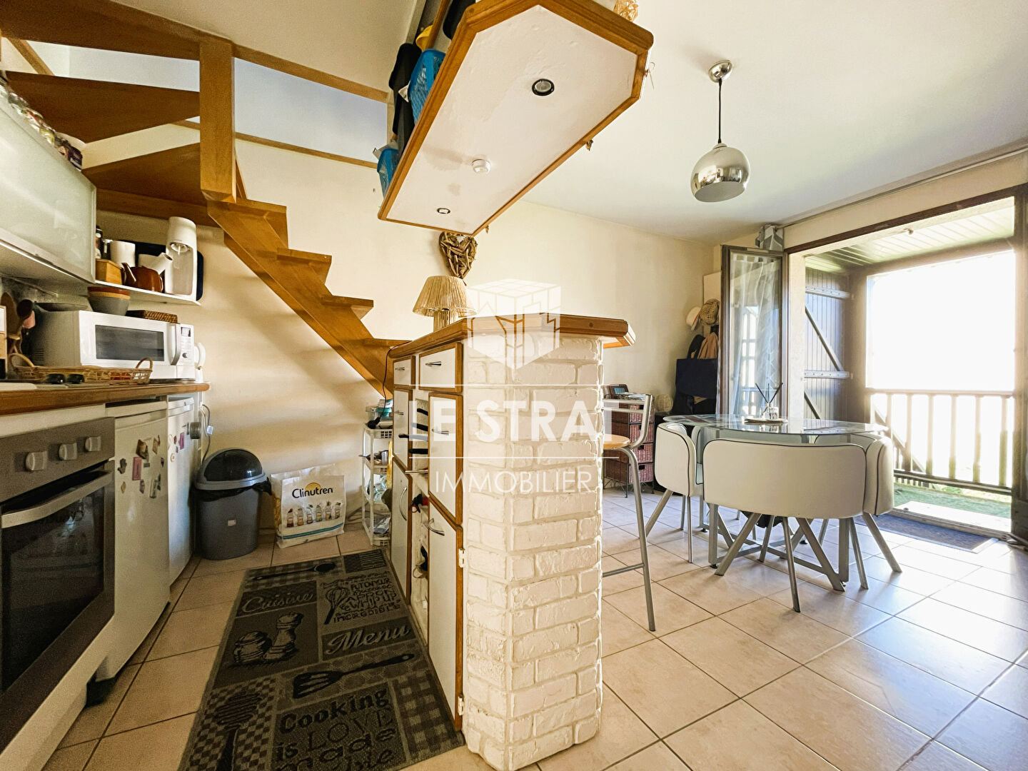 L’appartement se compose d’une belle pièce de vie avec cuisine ouverte, accès direct à un beau balcon, une salle de bains et un WC au 1er niveau.