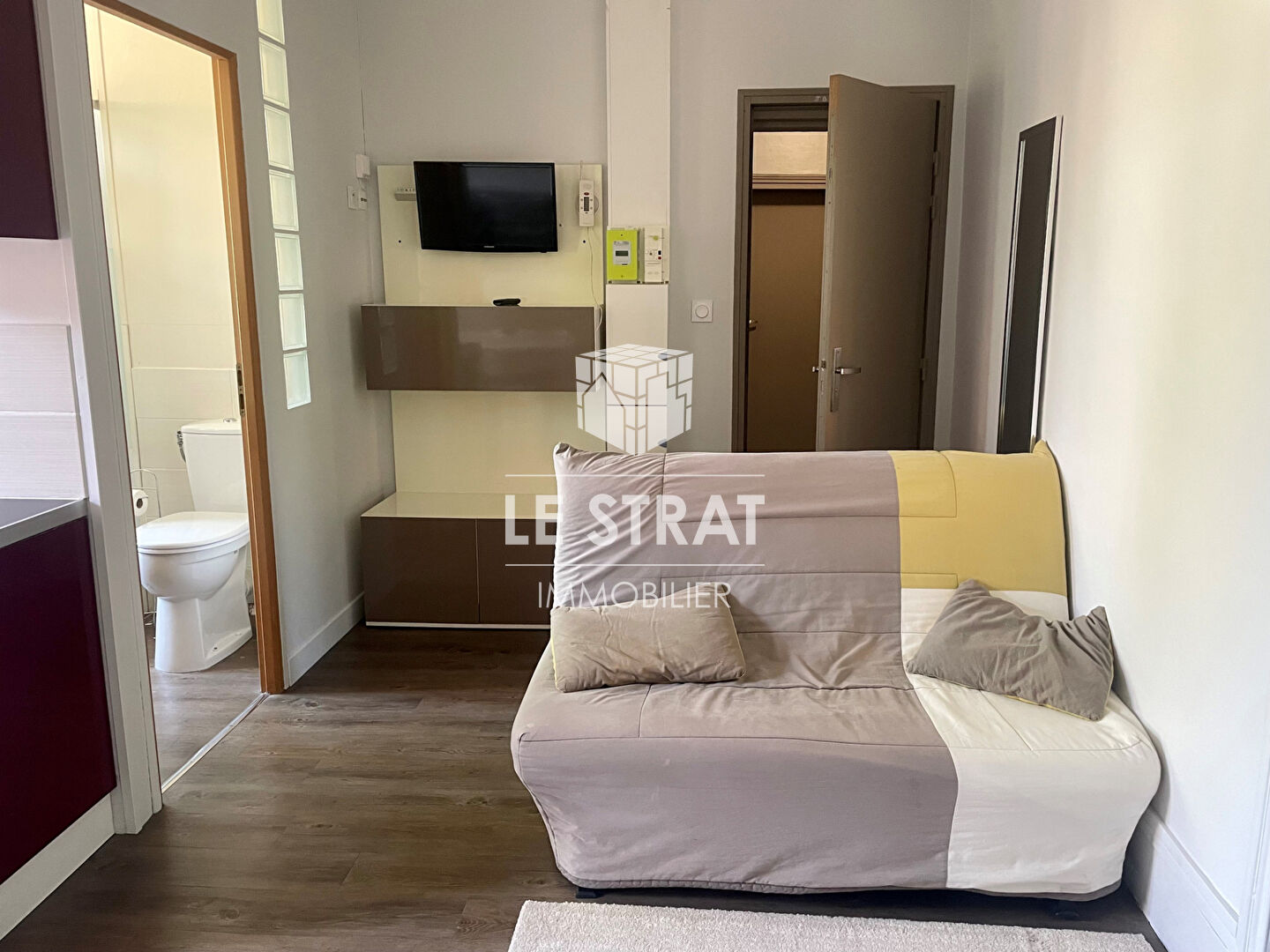 Il se compose d’une entrée, d’une cuisine aménagée et équipée ouverte sur le séjour, d’une chambre, d’une salle de douche et WC.