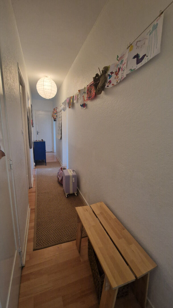 Dans quartier recherché proche du centre-ville grand T5 de 87 m² environ, traversant et chaleureux, comprenant : entrée, cuisine aménagée , séjour, salon sur parquet, balcon loggia, dégagement/couloir avec placards, WC, salle de douche avec séchoir, trois chambres sur parquet. Chauffage et eau chaude collective.